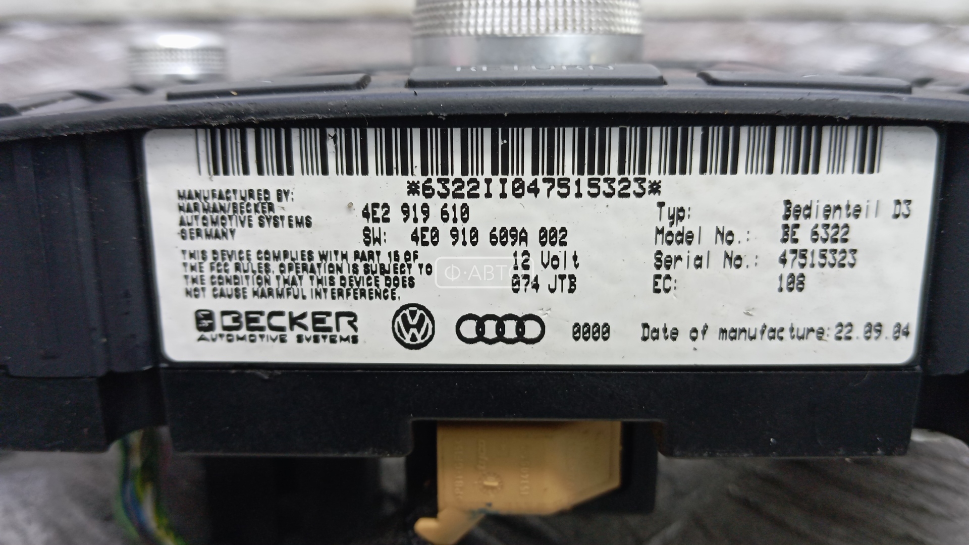 | Ориг. номер | 4E2919610 |
