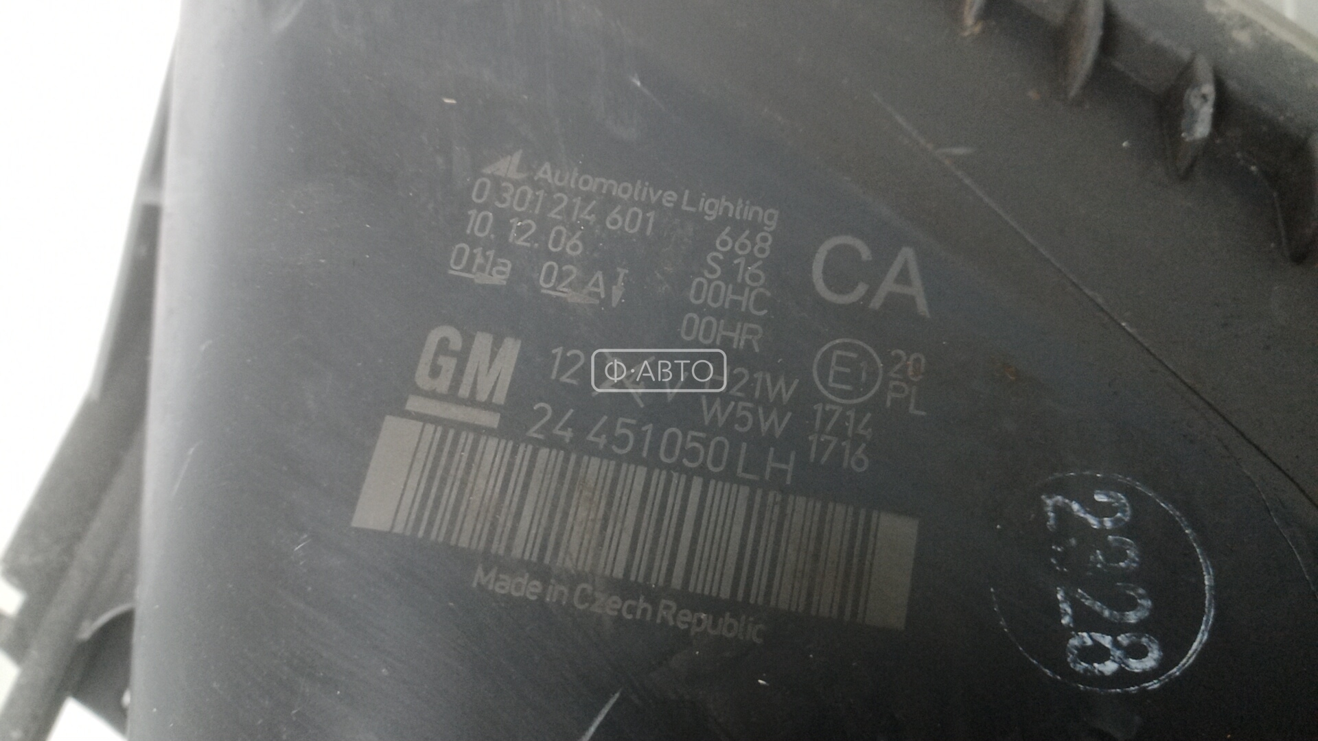 | Примечания | дефект креплений, мутное стекло |